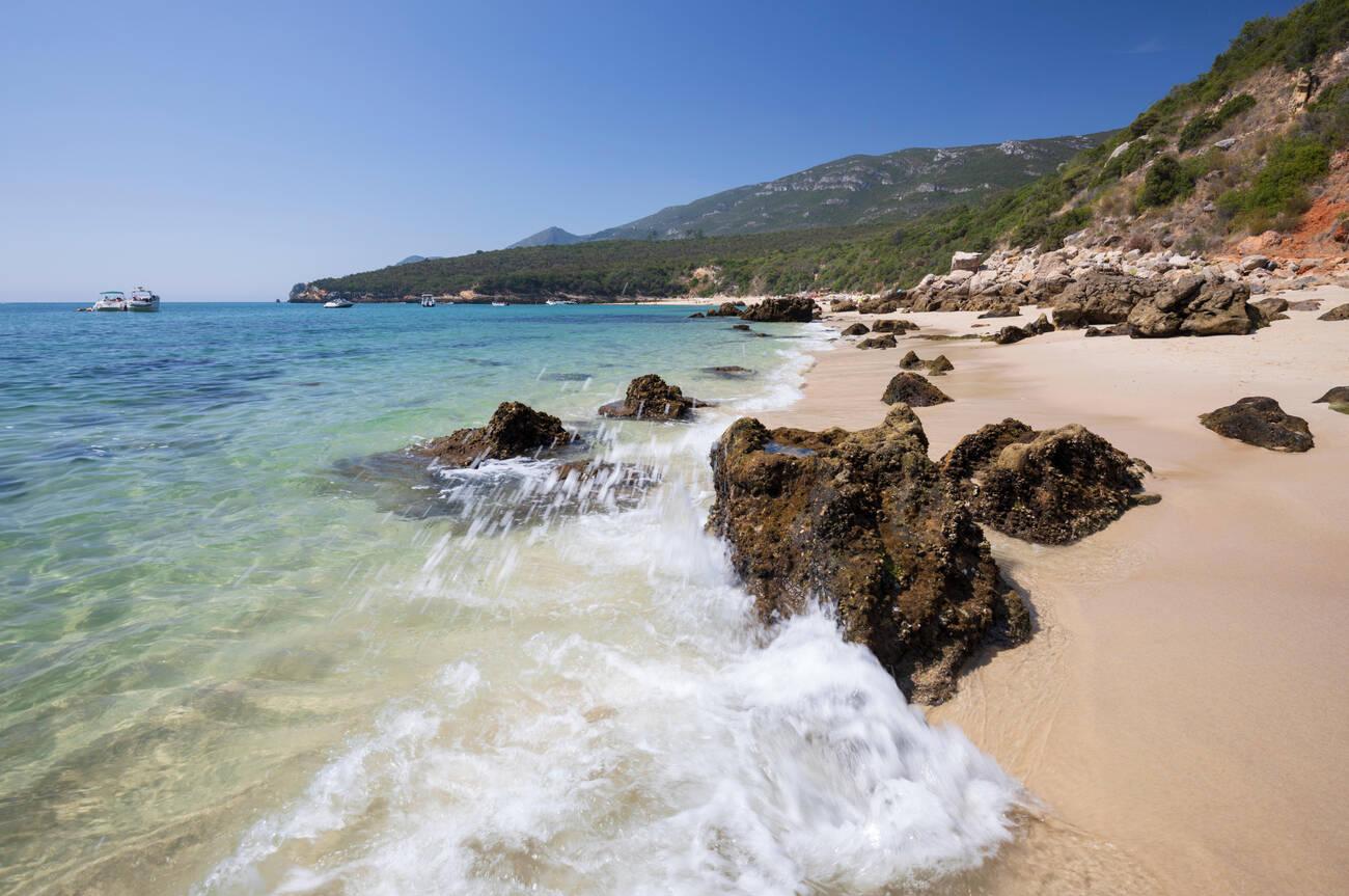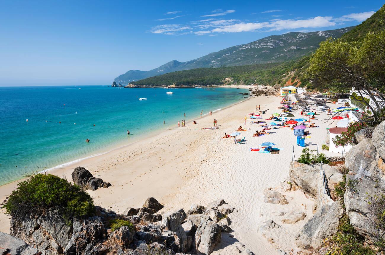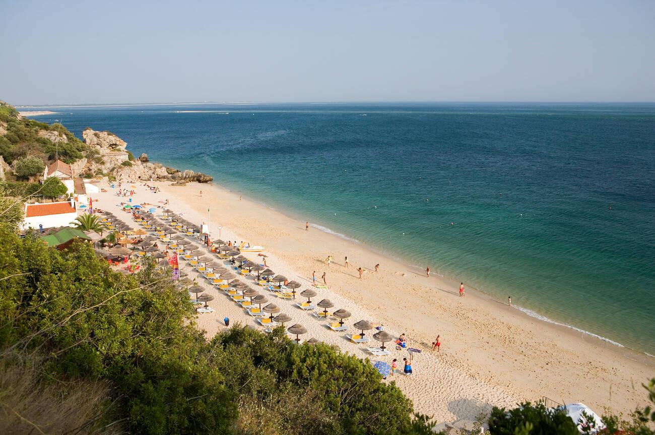Aside from sunbathing and splashing in the gentle waves, visitors often try stand-up paddleboarding on Figueirinha’s tranquil waters. The beach is well-equipped too. In summer, there are lifeguards on duty, a café serving fresh snacks, and blue-and-white parasols and loungers available to rent. Praia da Figueirinha proudly flies the Blue Flag for its clean and safe environment. Getting here is easy – it’s the closest Arrábida beach to Setúbal city, accessible by car (parking is available, though it fills up fast) and even by a seasonal beach bus from town. Go on weekdays if you seek a more laid-back atmosphere, as weekends can get busy with locals. Whether you’re building sandcastles with kids or enjoying a peaceful paddle, Figueirinha welcomes you with a friendly vibe and beautiful scenery.